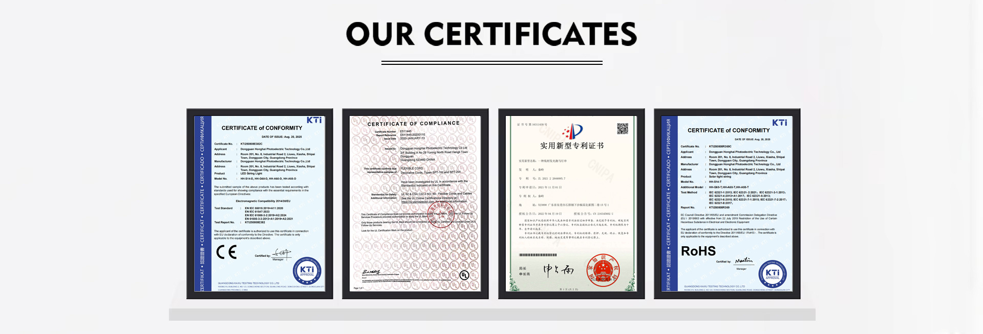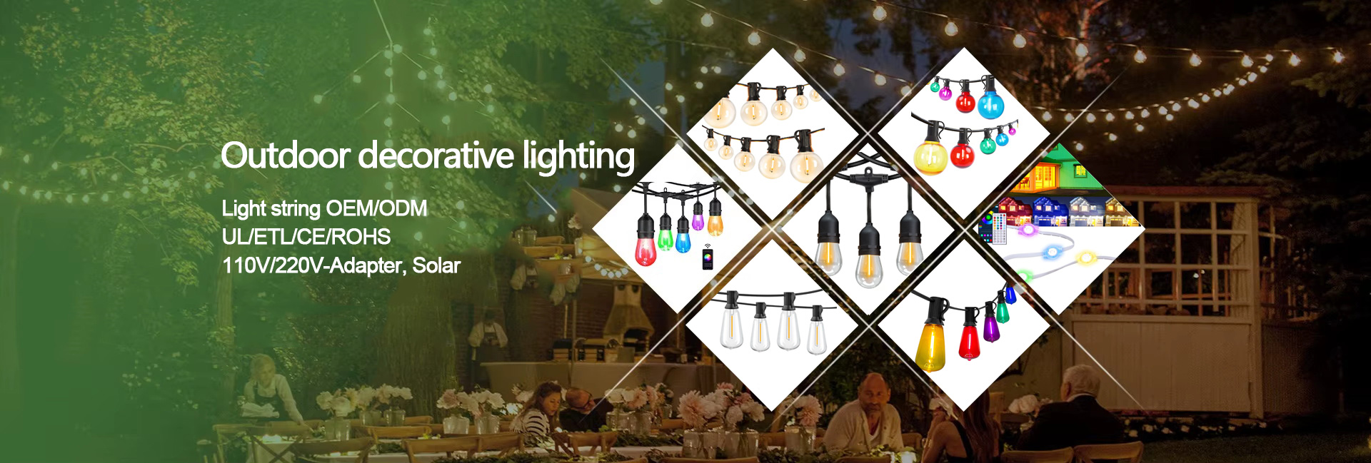 Zhongshan Yihong Lighting specializes in garden lights and outdoor decorative lighting. Its core products include outdoor waterproof LED string lights, solar string lights, RGB string lights, eaves lights, and G-series, ST38/S14/E26 and other multi-specification string lights. The company holds multiple certifications including ETL, UL, CE, and FCC. Integrating resources across the entire industry chain, and relying on three major production bases in Zhongshan, Dongguan, and Vietnam, the company has established an integrated “R&D-production-sales” export service system. It possesses automated equipment covering the entire production chain, from plastic injection molding and cable manufacturing to lamp production, inspection, and packaging. Its products are sold to numerous countries and regions including Europe, North America, Russia, and the Middle East.